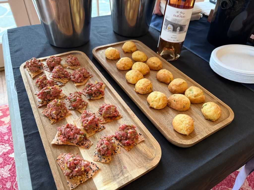 Of course, the highlight was our food and wine pairings. First off was a 2024 Viognier paired with a wagyu tartare, then a savory cheese puff (the fancy name is tallow gougère) to go along with their 2024 Rosé.