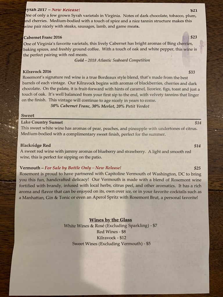 I first encountered Rosemont’s wines while visiting Early Mountain. It’s rare for me to not immediately recognize the name of a Virginia winery; when I looked them up I realized why! Located in the far southern reaches of the state, it’s definitely…out of the way…shall we say?