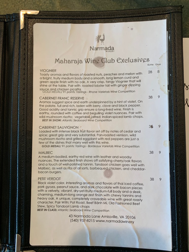 Sudha has been the winemaker since they opened in 2009. One thing that always struck me about Narmada’s wines is they often seem to have a spiciness to them, which I attribute to her cultural and educational background. It also helped that she took classes with Jim Law, who she calls the “guru of Virginia wine”. Now Narmada makes around 3000 cases/year.