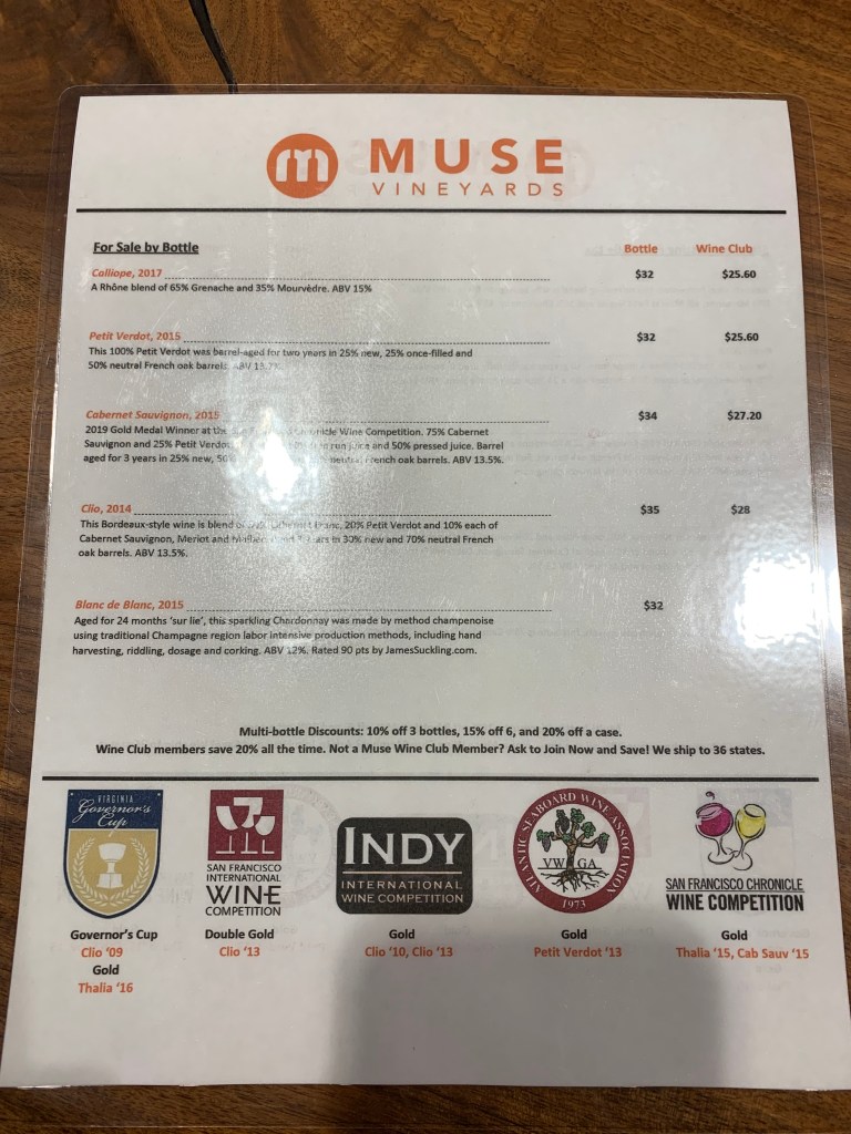 2017 “Virginia Mountain Red” Pinot Noir: Served chilled. Very light color; more of a festival or pizza wine.