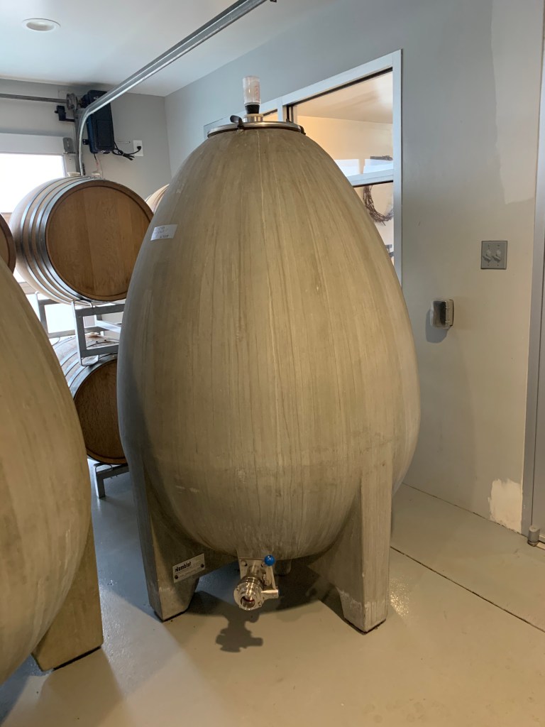 We also stopped to discuss their concrete egg, which they used for their Sauvignon Blanc. This ‘egg’ fascinates me. These vessels combine some of the advantages of both oak and steel; it adds depth and mouthfeel but doesn’t leave flavor behind. Given Linden Vineyard (possibly my all-time favorite winery) is one of the few Virginia wineries that also uses such a device, I’d say Stinson is in great company.