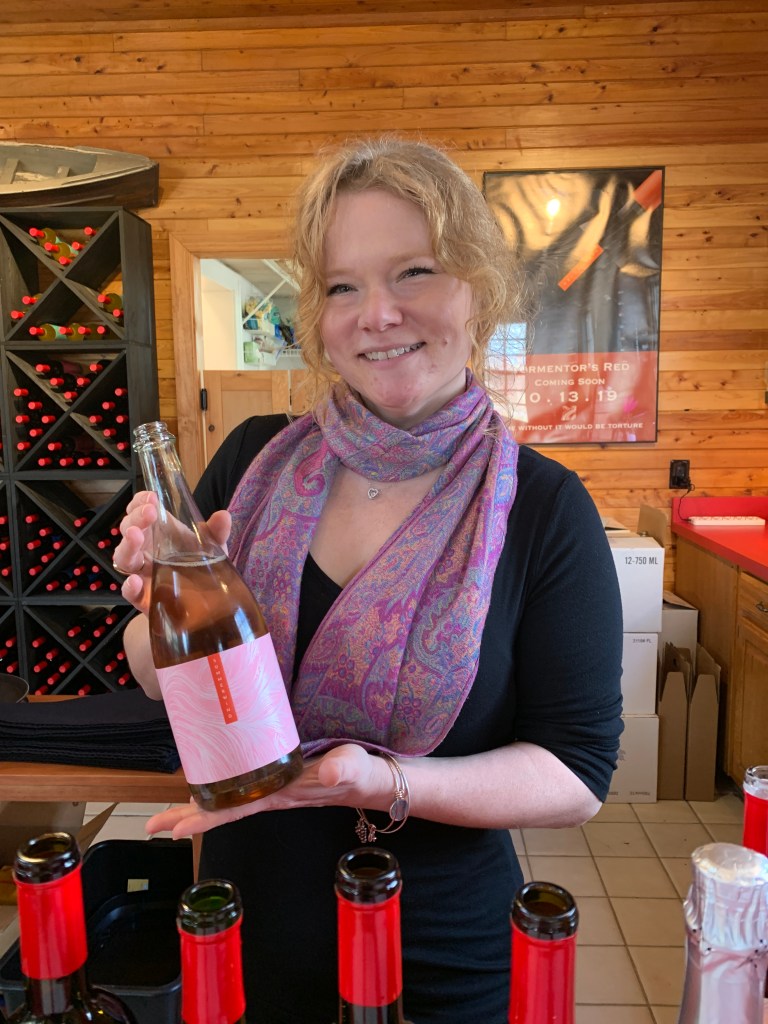 For reds, I was surprised how light the 2017 Cabernet Franc was in both color and taste, without losing its pepperiness. Next up was the 2017 Merlot that had notes of black cherry. The semi-sweet “Pagan” blend (Merlot/Chambourcin/Cabernet Franc/Cabernet Sauvignon, named after a local river) was a good porch-sipping wine – and their biggest seller.