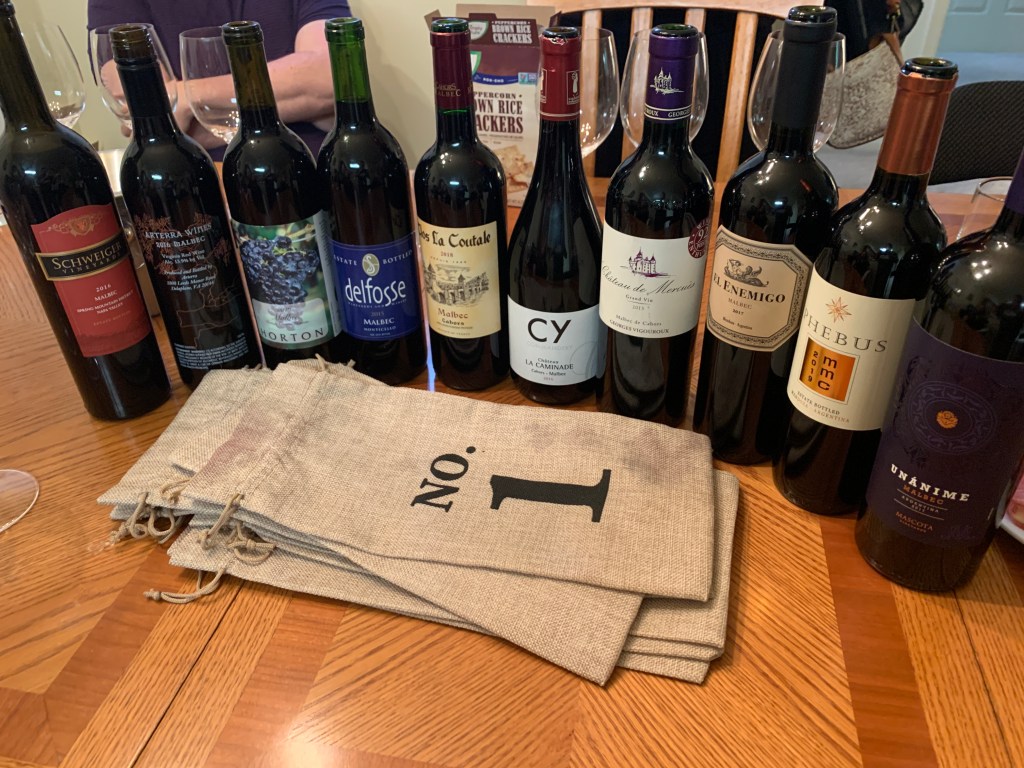 To answer this question, some friends and I tasted 9 wines from three different regions, including Mendoza (Argentina), Cahors (France), and Virginia (mostly central VA but also one from Fauquier).