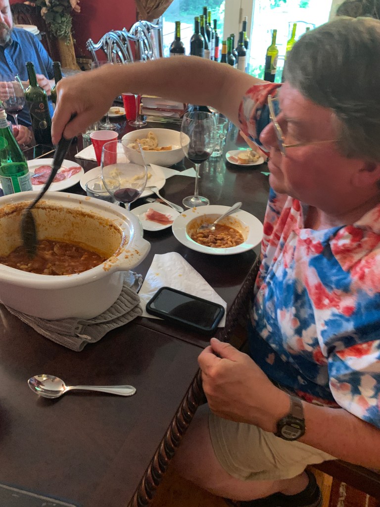 2013 Michael David “Inkblot” (Lodi, California): At 14.8% alcohol it was ‘hot’. Coco characteristics, dusty tannin. Overly ripe fruit. Our only California wine of the evening. We were surprised we didn’t like it more…maybe we all have too much of a Virginia palate?