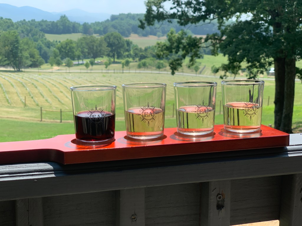 While they won’t have their own wine for another year, they do serve a mixture of bottles from Early Mountain, several Shenandoah wineries, and Italy. I even spotted Midland Construction, grown on the Jordan family farm. I sipped a flight on their porch overlooking the vineyard.