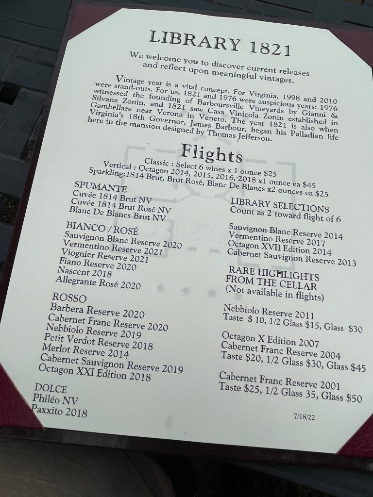 Often I do two flights because I never want to miss anything, but go with a group so you can order more. And funny story – turns out that I had some unpublished notes from November 2021, so I’ll include those notes with my August 2022 visit.