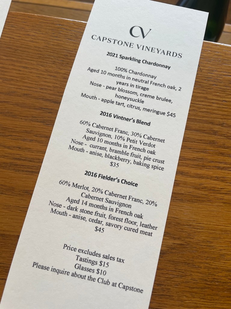 - 2017 Opus One. Similar tasting notes but I thought with more complexity. Bottled sold at this particular event were in magnum, which (I didn’t know) increases their age-ability. 80% Cabernet Sauvignon, 16% Cabernet Franc, and 4% Merlot.