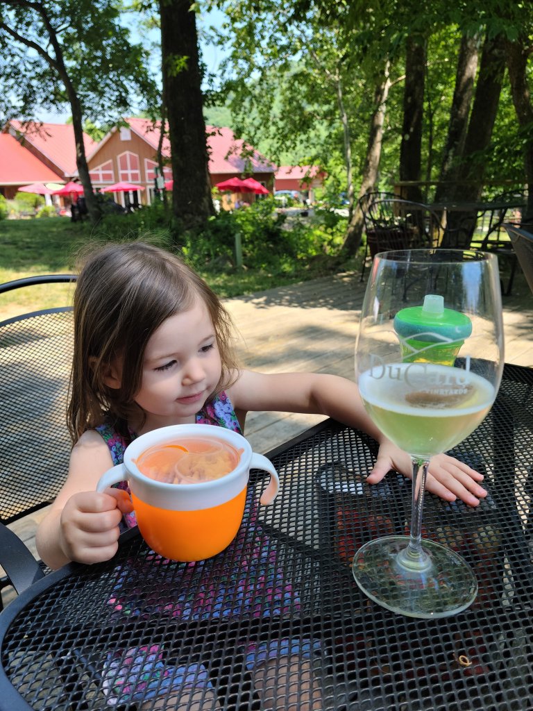 Owner Scott Elliff was making the rounds amongst guests when I walked in, showcasing his latest wine; “Pet-Nat”. He even made t-shirts with a gnat logo for the occasion! My group managed to grab a table near the brook and settled down with a glass. Even the 2 1/2-year-old seemed to appreciate the color.