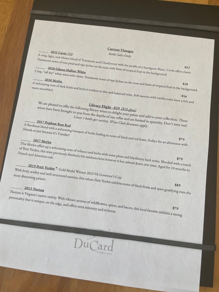 DuCard is located not far from the Sperryville entrance of Skyline Drive, and even closer to the White Oak Canyon and Old Rag trailheads. I’ve long thought of it as a hidden gem, although more of my friends including My NOVA Wine Blog have been discovering it.