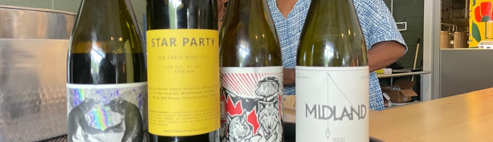 The Jordan brothers also make a ‘family of wines’ that are branded separately but share broad stylistic similarities. For one, all or nearly all the fruit used for CWCC, Midland (the Jordan family farm), Lightwell (Tim’s brand), and Star Party (Ben’s brand) wines are from the Shenandoah Valley, so they tend to be higher in acidity. Ben and Tim also share a love of fanciful labels, minimal intervention winemaking, and a flair for blending, often using varieties that are otherwise rarely seen in the same bottle.