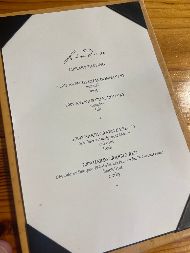 Linden used to do Library tastings every December until COVID hit, so this is something of a return to norm. I was really impressed that Linden charged the same price for this library tasting that they do for their regular tastings. I attribute that to Jim being a ‘wine educator’ at heart, and he wants to make the study material available to everyone.