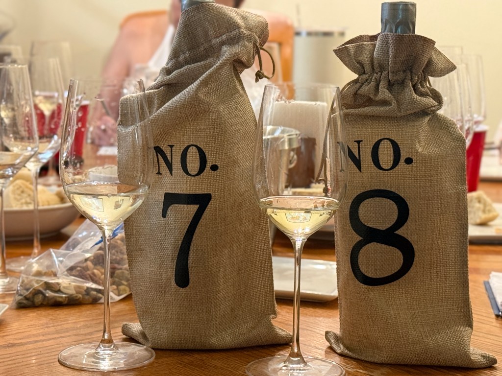 Bottle #6 / Capstone Vineyards 2023 Sauvignon Blanc. Pineapple and mango were mentioned. Had weight. Long lingering finish. We speculated these tropical notes indicated this was the Washington State wine we accidentally included in the lineup (nope; 100% grown in Virginia).