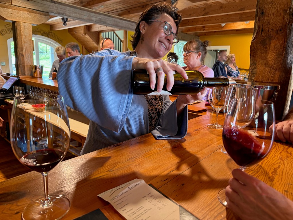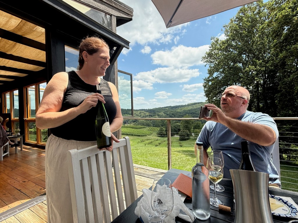 With the cellar tasting complete we adjourned upstairs for their regular tasting. Linden only recently switched over to a ‘summer’ tasting, now comprised of the 2023 Avenius Sauv Blanc, the 2023 Hardscrabble Sauv Blanc, the new 2022 Claret, and a full-varietal Cabernet Franc. And oh yeah – that 2024 Petit Verdot sample!