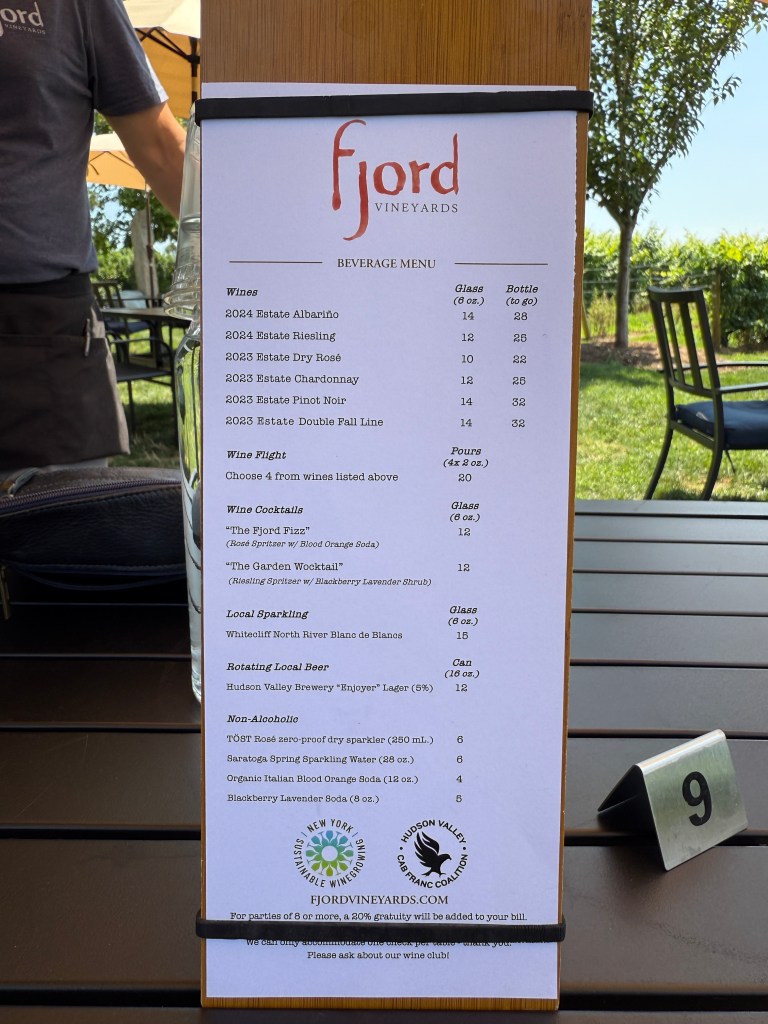 As a native of the Hudson Valley, you can imagine how pleased I am at the proliferation of vineyards in the area. When Fjord opened along Route 9 at a site not far from the Hudson River, I marked it as a must-visit, even if it took me a while.